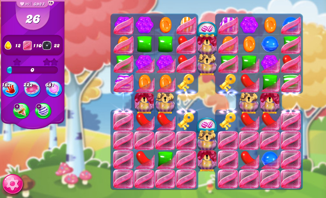 6927關:26步內清除黃色糖果、泡泡糖與甘草糖